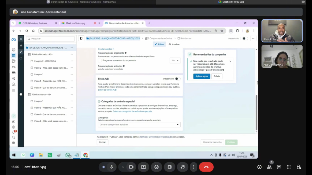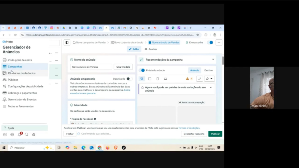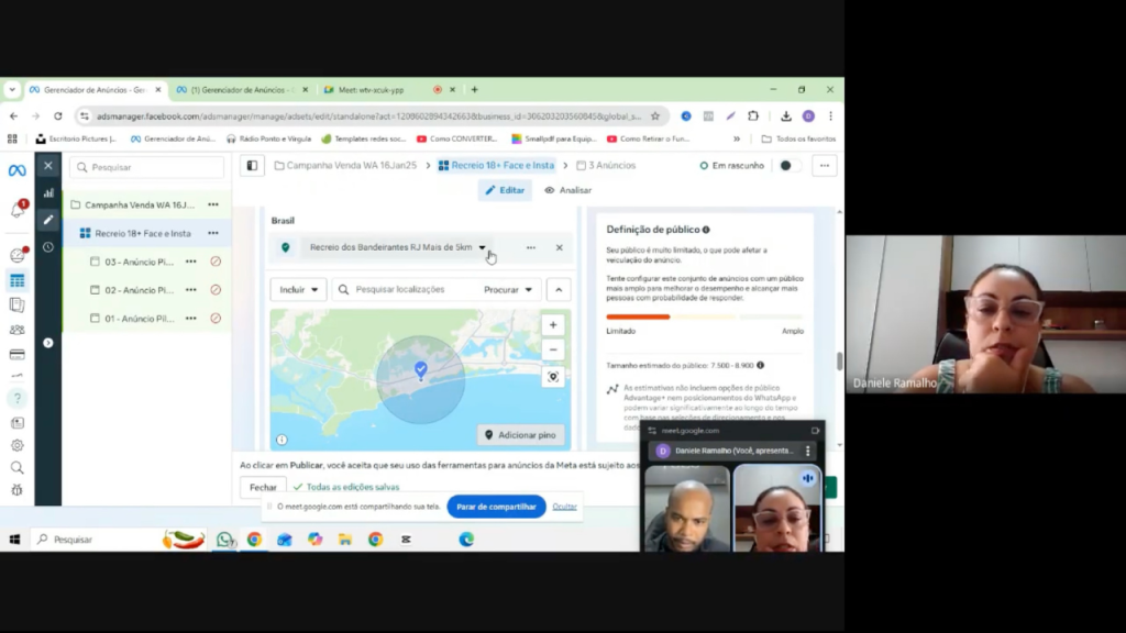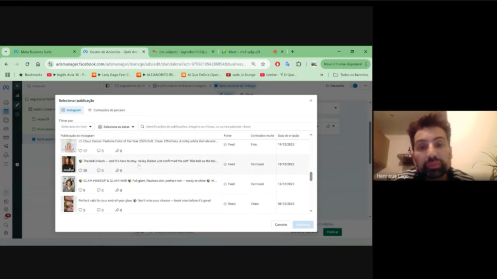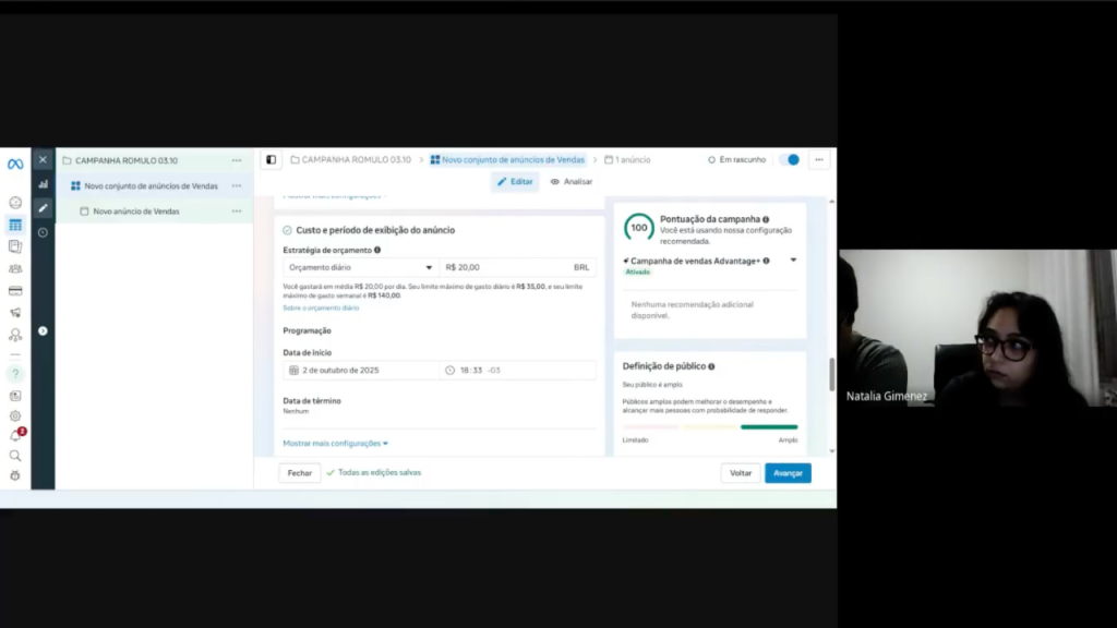 Não se preocupe. A nossa sessão via Google Meet será gravada na íntegra e o link será enviado para você. Assim, você poderá consultar cada clique e cada explicação estratégica sempre que precisar implementar algo novo.